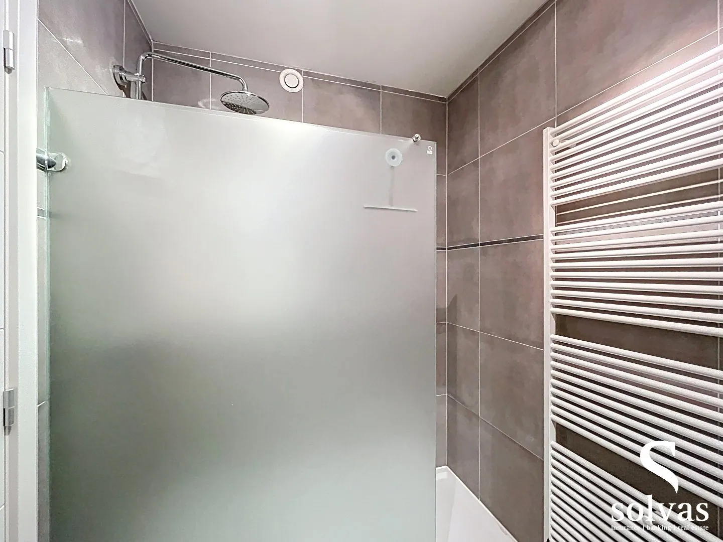 Bij het binnenkomen word je verwelkomd in een lichte en gezellige woonkamer met grote ramen die uitgeven op een aangenaam terras. De overvloed aan natuurlijk licht zorgt voor een open en huiselijke sfeer. In de leefruimte is een stijlvol tv-meubel geïntegreerd. De halfopen keuken is volledig ingericht met moderne toestellen en biedt alle comfort voor dagelijks gebruik.