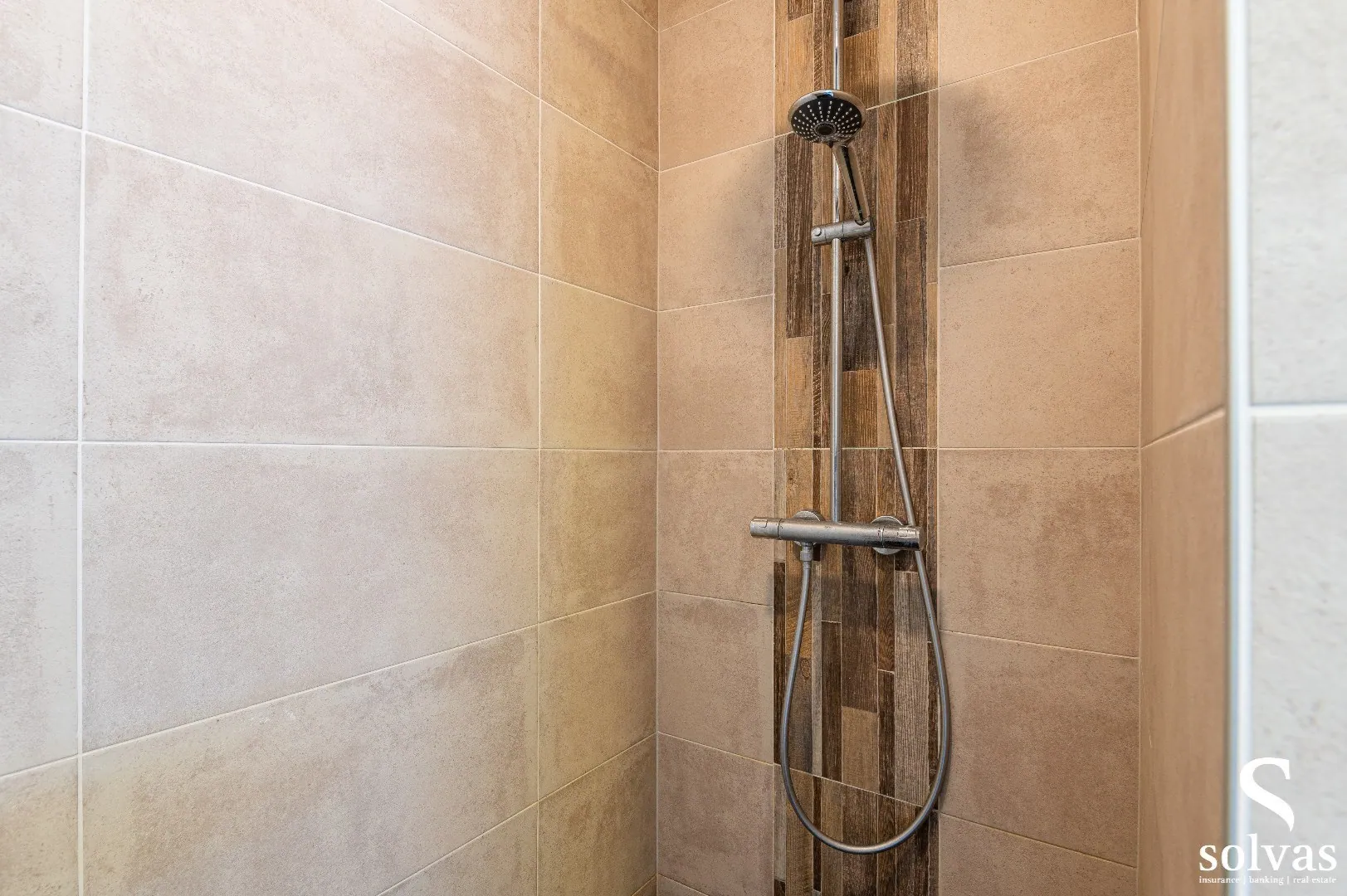 De indeling is praktisch en doordacht: een inkomhal met apart gastentoilet, een lichtrijke leefruimte met open, volledig geïnstalleerde keuken, en een aansluitende berging. Vanuit de leefruimte heeft u toegang tot het overdekte terras, ideaal om het hele jaar door van buiten te genieten.
