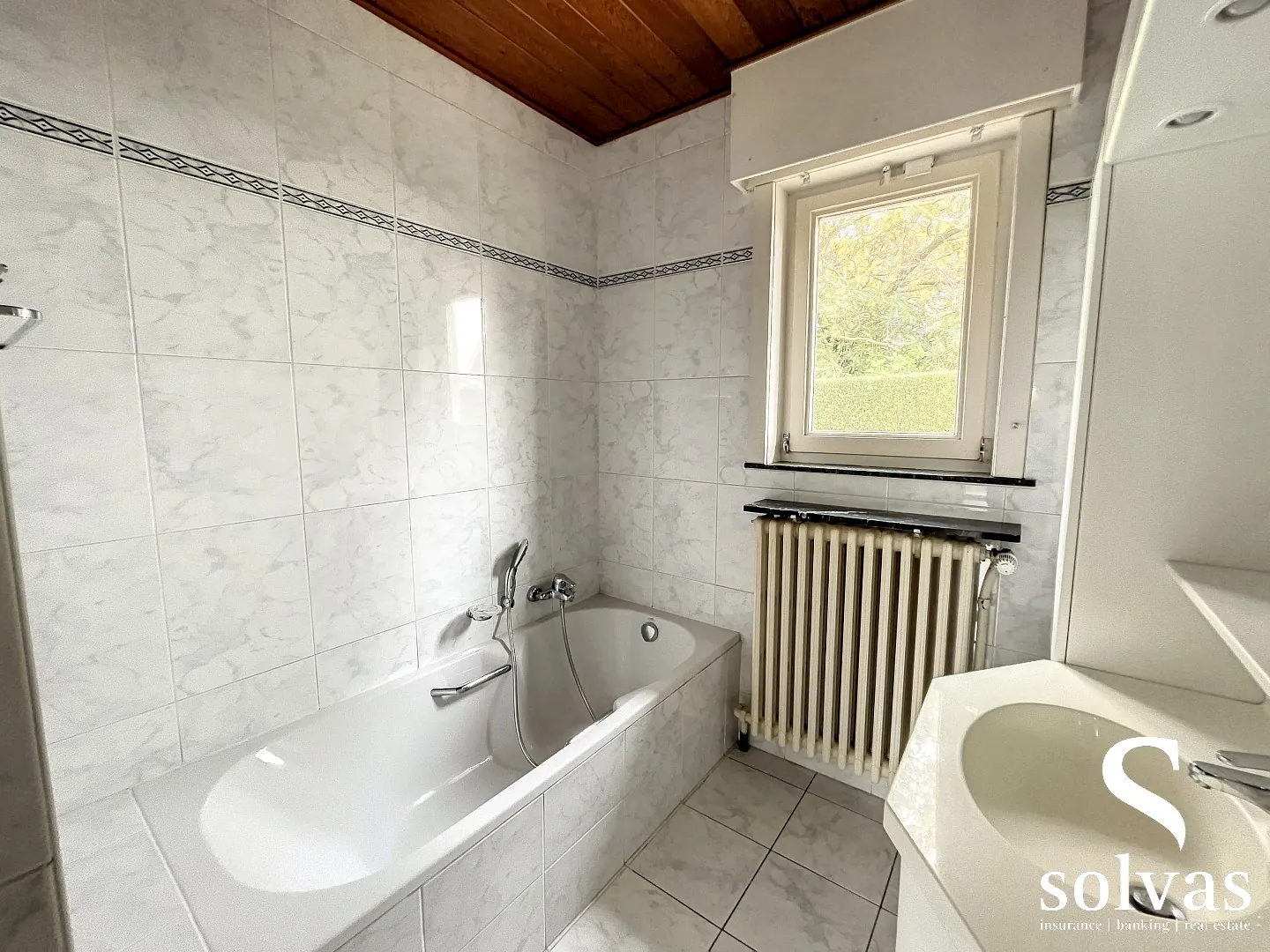 Indeling: inkomhall, afzonderlijk toilet, drie slaapkamers, badkamer, ruime living, ingerichte keuken met veranda (zicht op tuin), gecompartimenteerde kelderberging, wasplaats en dubbele garage.