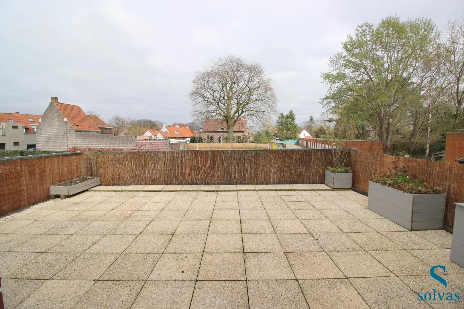 Duplex appartement gelegen op de 1ste verdieping in het centrum van Aalter. Het appartement heeft de volgende indeling: ruime leefruimte met veel lichtinval, ingerichte keuken, badkamer met bad en toilet, wasruimte en een groot terras. Verder op het verdiep zijn er nog 2 slaapkamers en een toilet. Winkels, restaurants, kinderopvang en nog zoveel meer op wandelafstand bereikbaar. | vrij 01/06 | verwarming op elektriciteit (accumulatiekachels) |