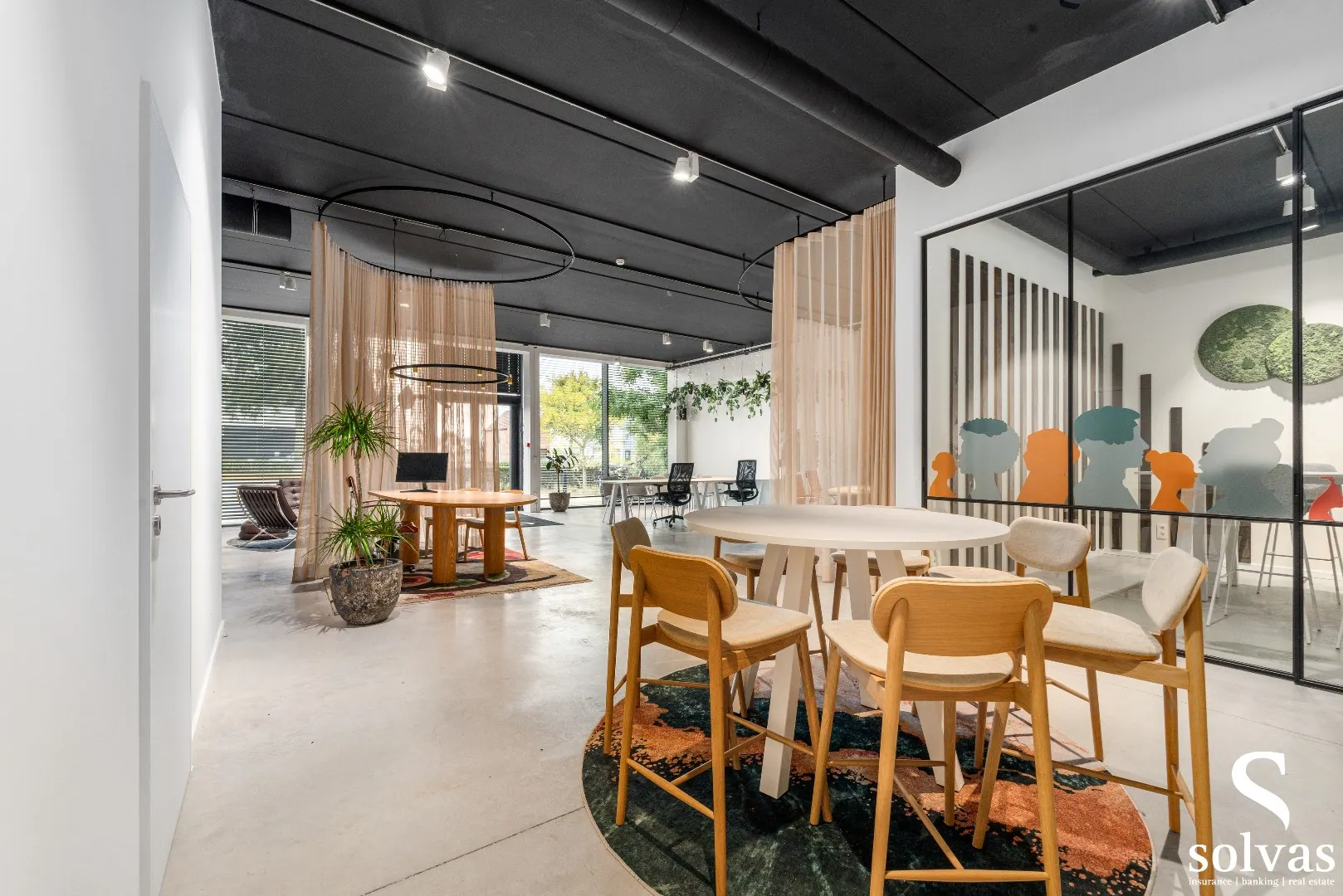 De kantoorruimte beschikt over een aparte vergaderzaal (24 m²), een afgesloten bureauruimte (15 m²) en een gezellige gemeenschappelijke keuken en bar — ideaal voor teammomenten of klantenontvangst.
