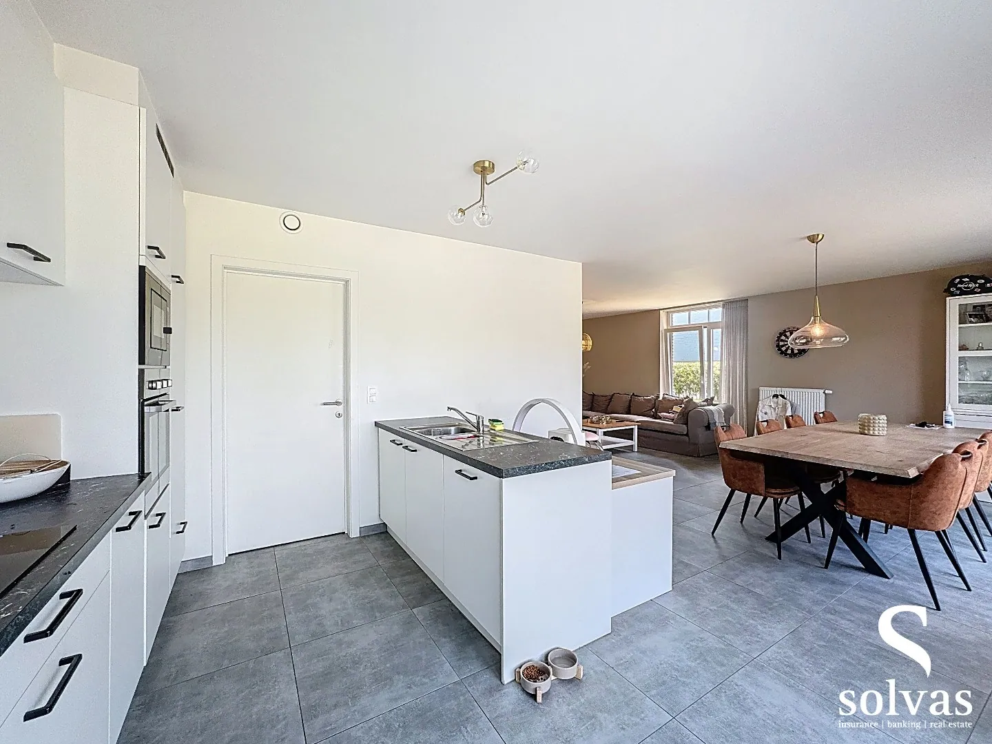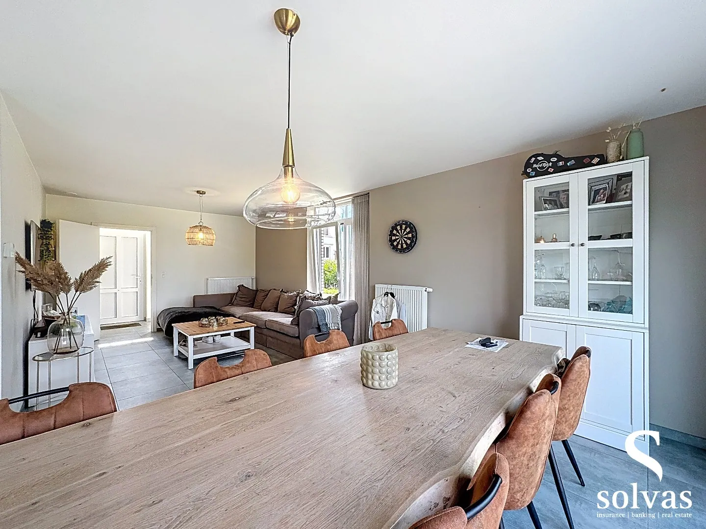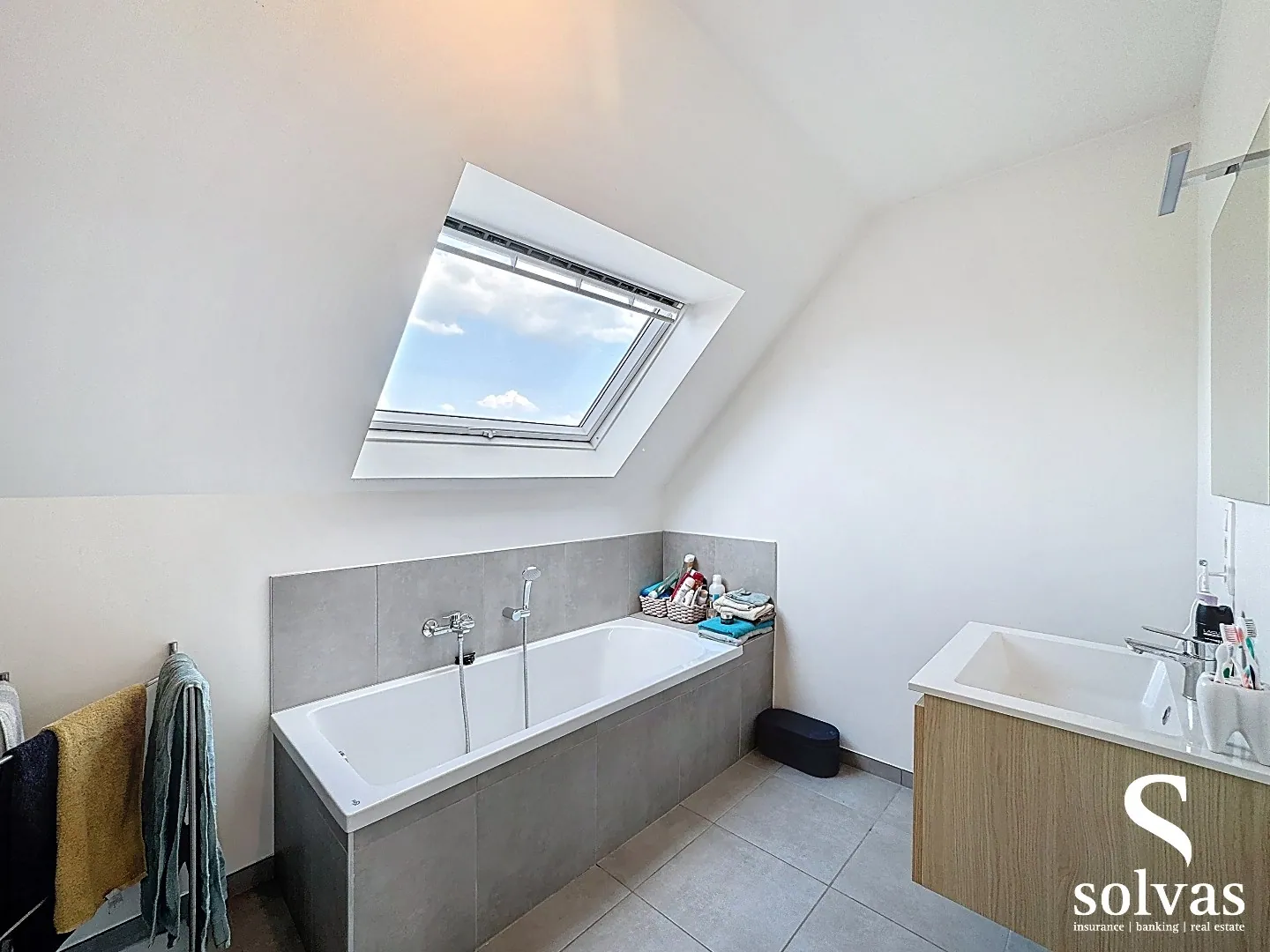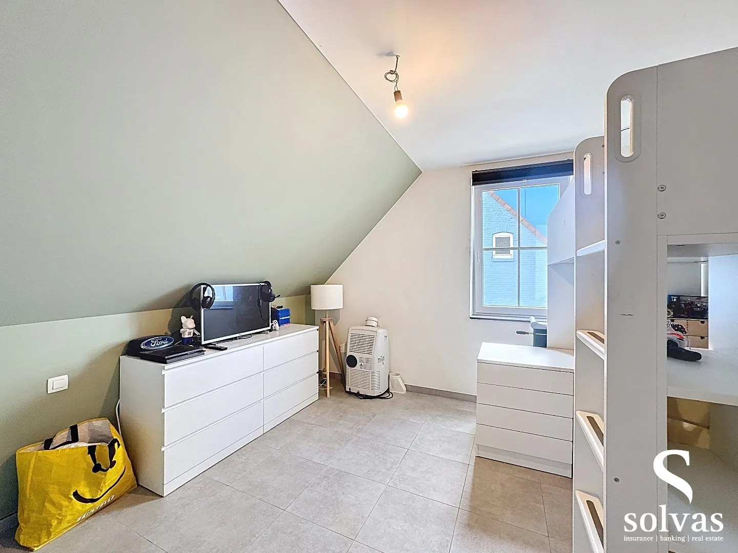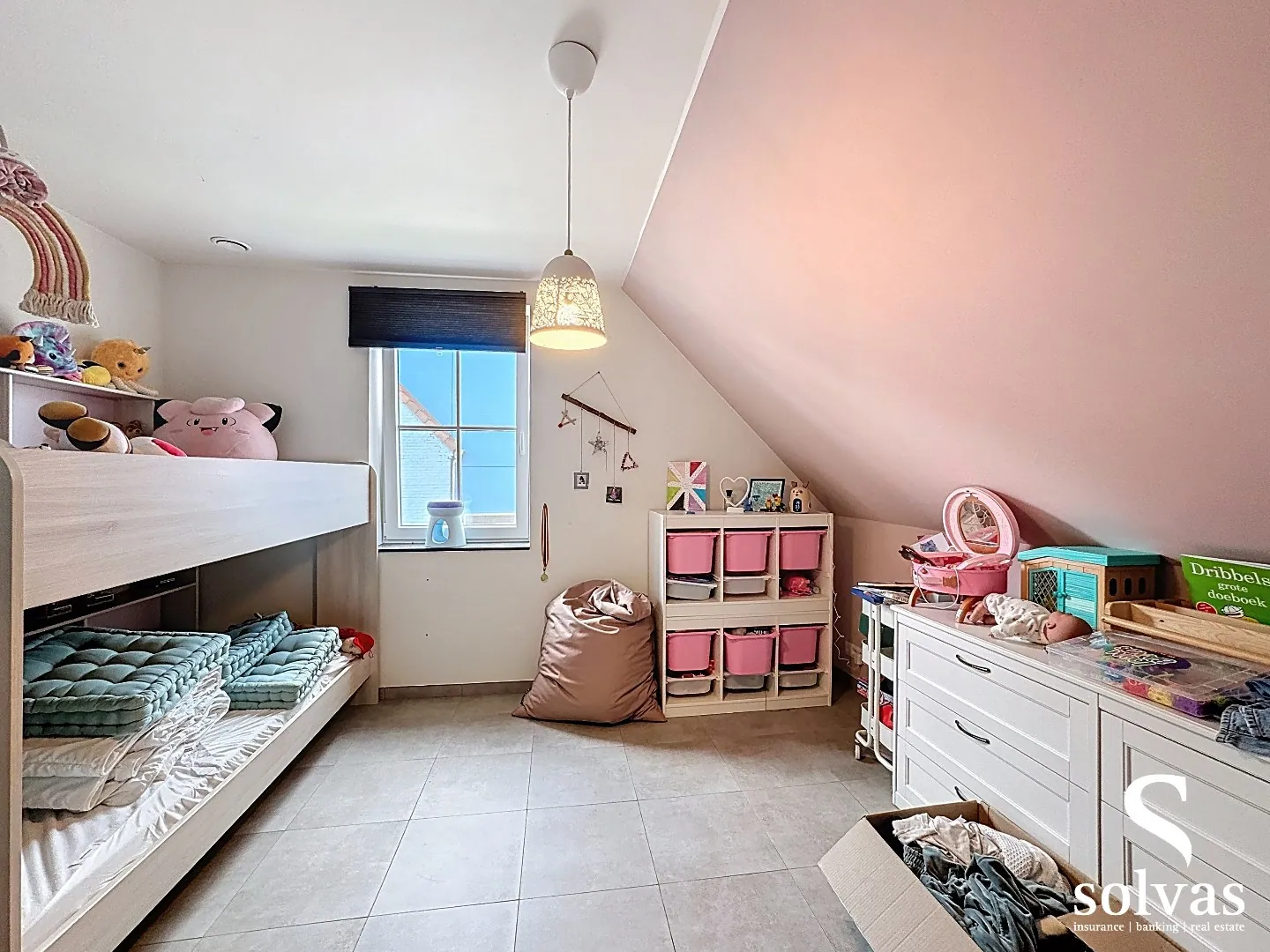 De indeling luidt als volgt: inkomhal met gastentoilet, lichtrijke leefruimte met open zicht op de tuin, volledig ingerichte, open keuken – perfect geïntegreerd in de leefruimte en achter de keuken een ruime garage met elektrische poort, waar ook de aansluiting voorzien is voor een wasmachine en/of droogkast. De grote, zonnige tuin is voorzien van een terras en praktische tuinberging, alsook van een robotmaaier. Op de eerste verdieping vindt u drie volwaardige slaapkamers, een badkamer met ligbad, inloopdouche en lavabo, een apart toilet en toegang tot de ruime zolderverdieping via een zoldertrap – ideaal als berg- of hobbyruimte.