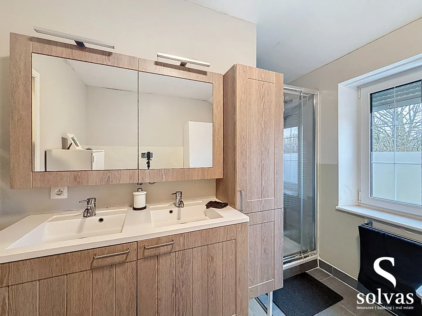 Op de eerste verdieping bevinden zich drie volwaardige slaapkamers, waarvan één met aansluitende dressing. De moderne badkamer is uitgerust met een douche, ligbad en dubbele lavabo. Daarnaast is er nog een apart toilet op deze verdieping.