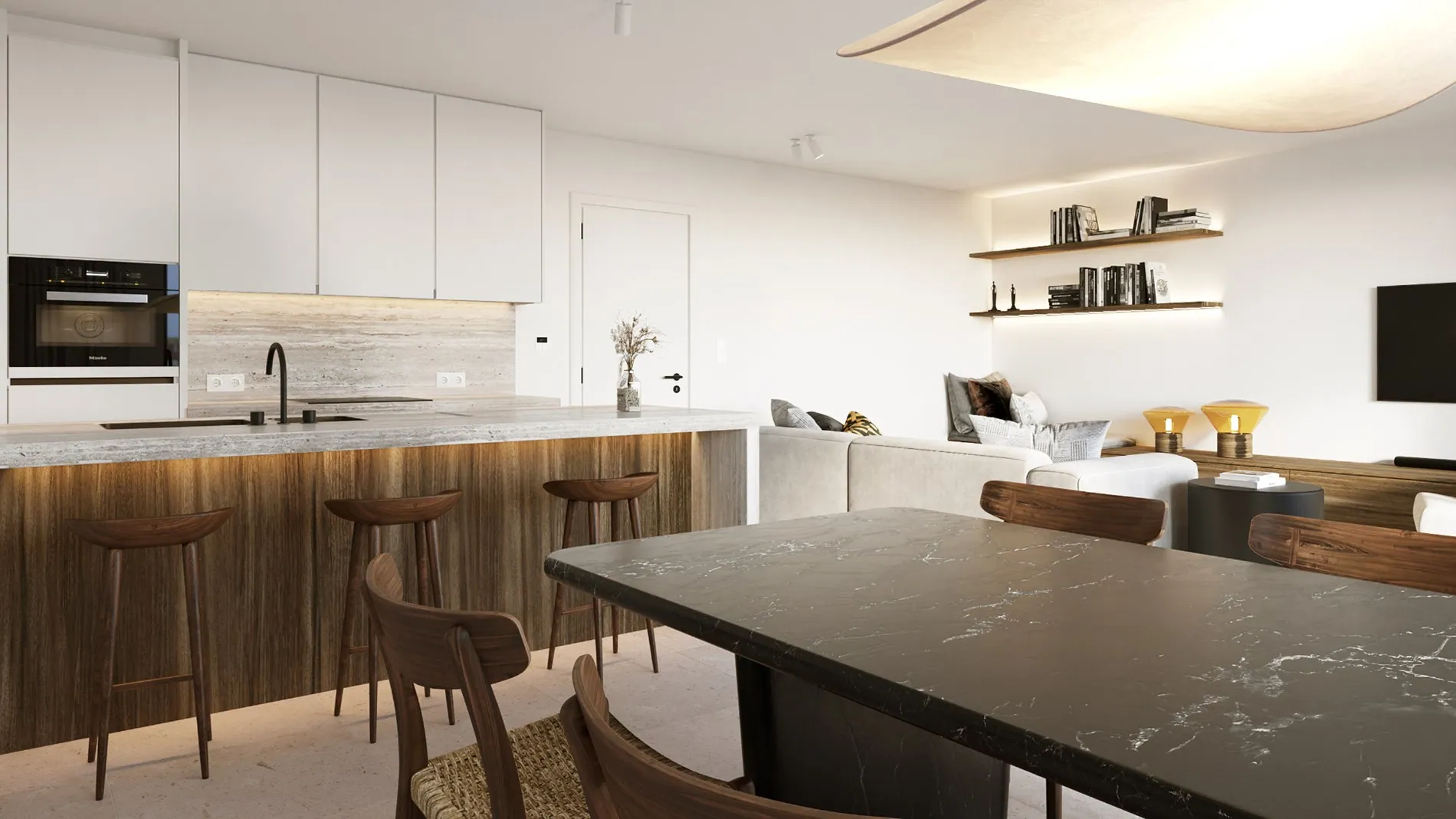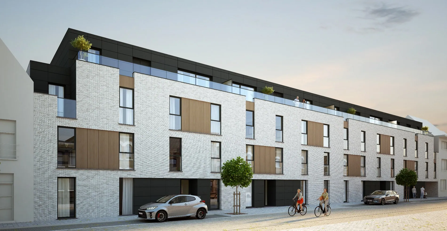De ruime appartementen hebben 1 en 2 slaapkamers. Twee penthouses tellen zelfs 3 slaapkamers. De grote raampartijen zorgen voor een optimale lichtinval. En dankzij de zuid oriëntatie zit je op je terras, of in je tuintje, lekker in de zon. Op de verdiepingen kan je in het verlengde van de leefruimte drempelloos naar de aangename zonneterrassen. Het gebouw bestaat uit drie verdiepingen en heeft een ondergrondse parkeergarage en fietsenstalling. Maar ook buiten is er plaats om je fiets achter te laten. De appartementen worden gebouwd volgens de recentste energienormen.