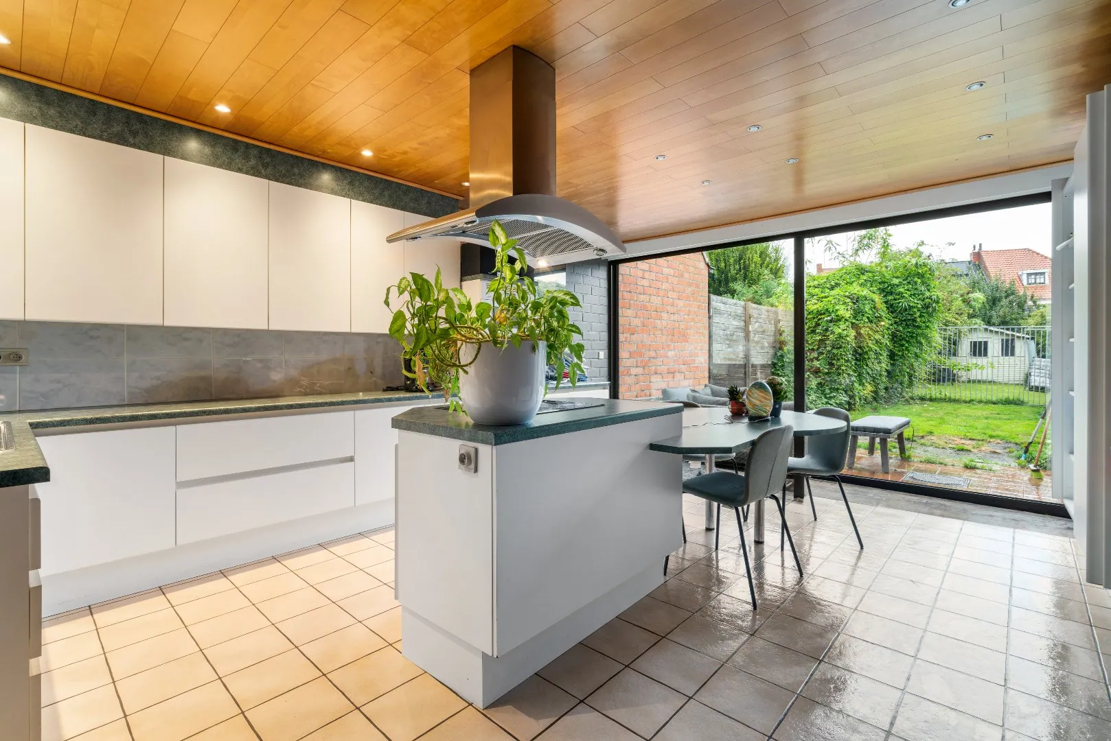 Bel-etage woning met garage en tuin te centrum Lievegem op wandelafstand van winkels, station en scholen. De indeling van de woning is als volgt: u komt binnen langs de garage en gaat zo verder naar de keuken die voorzien is van een kookeiland die volledig geïnstalleerd is met kookplaat, oven, koelkast en microgolf. De badkamer is voorzien van een lavabo, douche, ligbad en toilet. Op de eerste verdieping kunt u de leefruimte, toilet en een bureauruimte/ slaapkamer terugvinden. Op de zolder is er een ruime slaapkamer voorzien van ingemaakte kasten. De inpandige garage biedt plaats aan één wagen. Aan de achterzijde van de woning is er een gezellige tuin met terras aanwezig.
