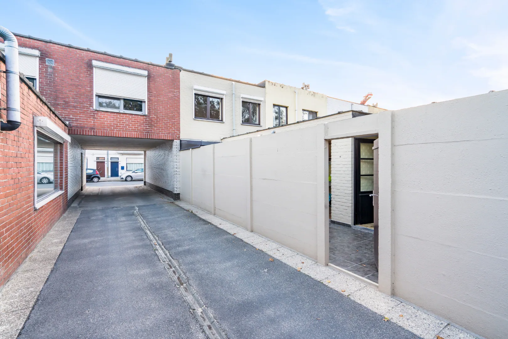 inkom met bergruimte onder de trap, woonkamer, ingerichte keuken, badkamer met douche, veranda, wasplaats, grote bergruimte en ruime koer. Op de eerste verdieping zijn er 2 volwaardige slaapkamers en een bureauruimte die eventueel nog kan dienen als 3de slaapkamer. | verwarming met gaskachels | vrij bij akte | Eventueel mogelijk om garage achteraan te huren |
