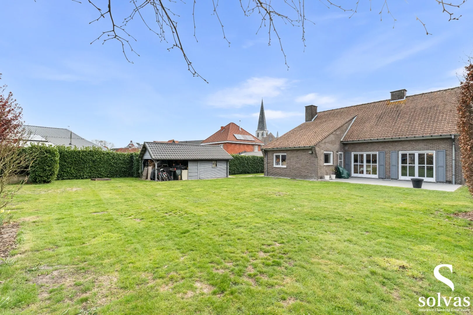 Buiten ... geniet u van een grote, volledig afgesloten tuin met aangelegd terras, overdekt terras en tuinhuis – ideaal voor wie graag buiten leeft in alle privacy. Bovendien zijn alle ramen voorzien van rolluiken.