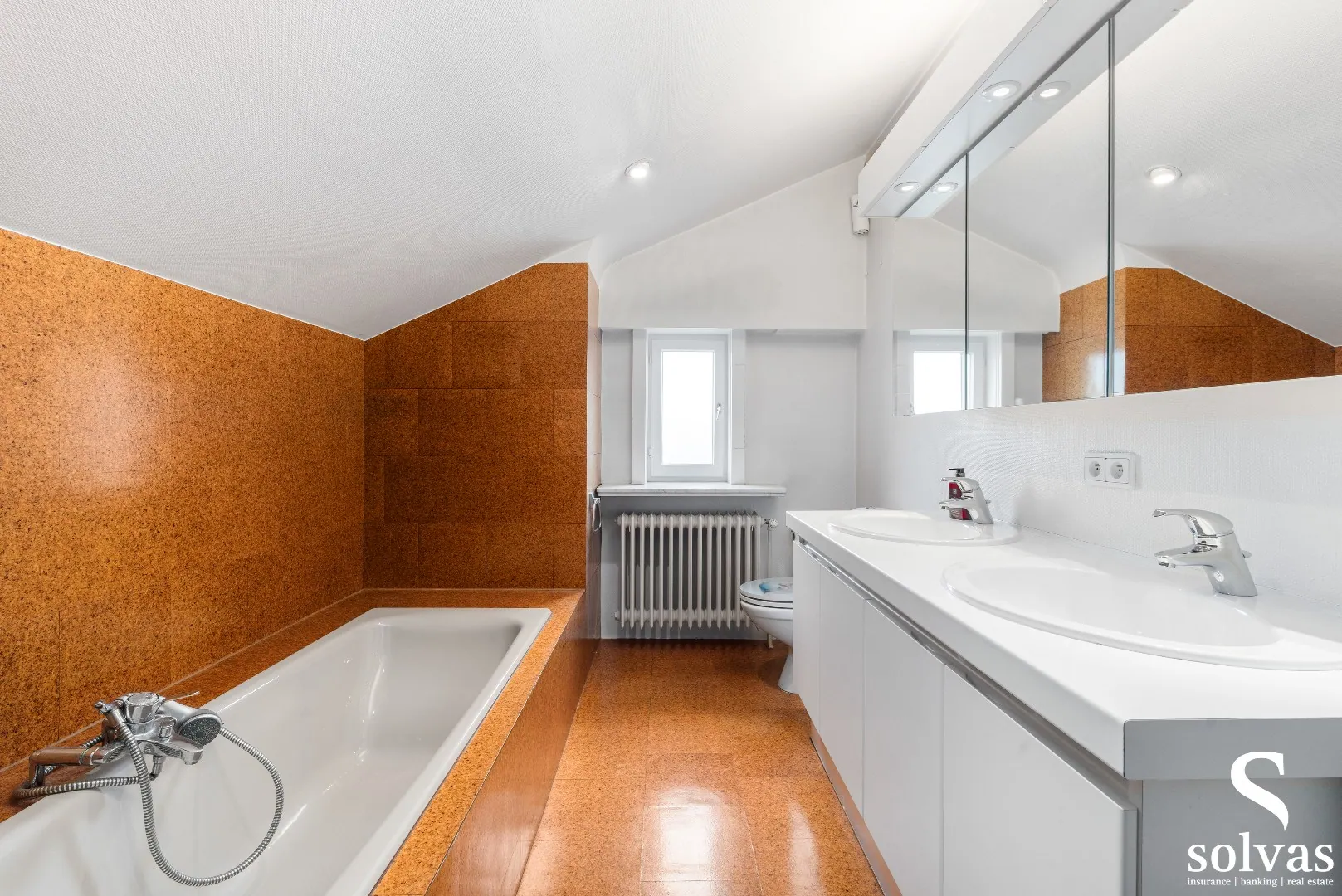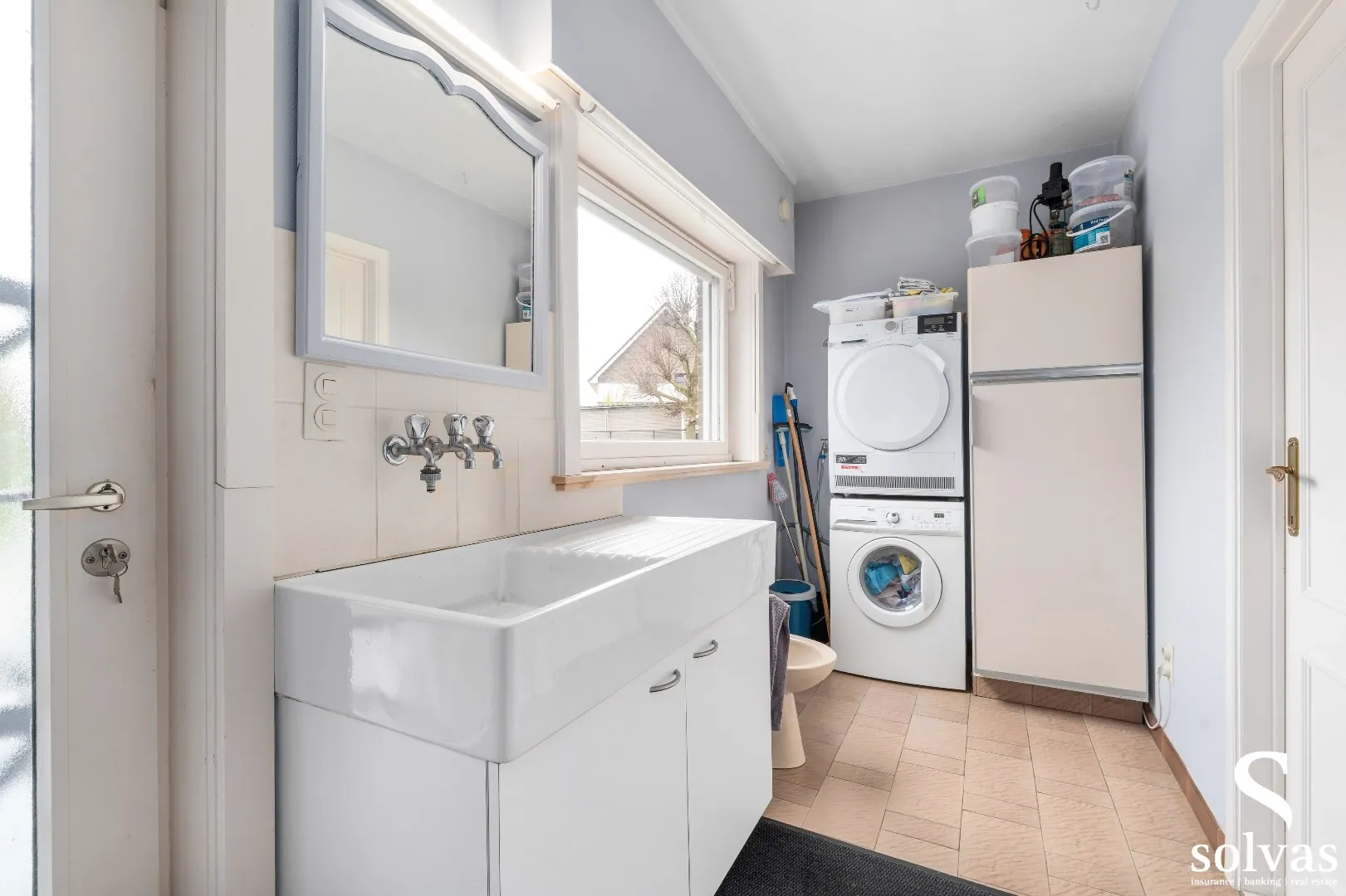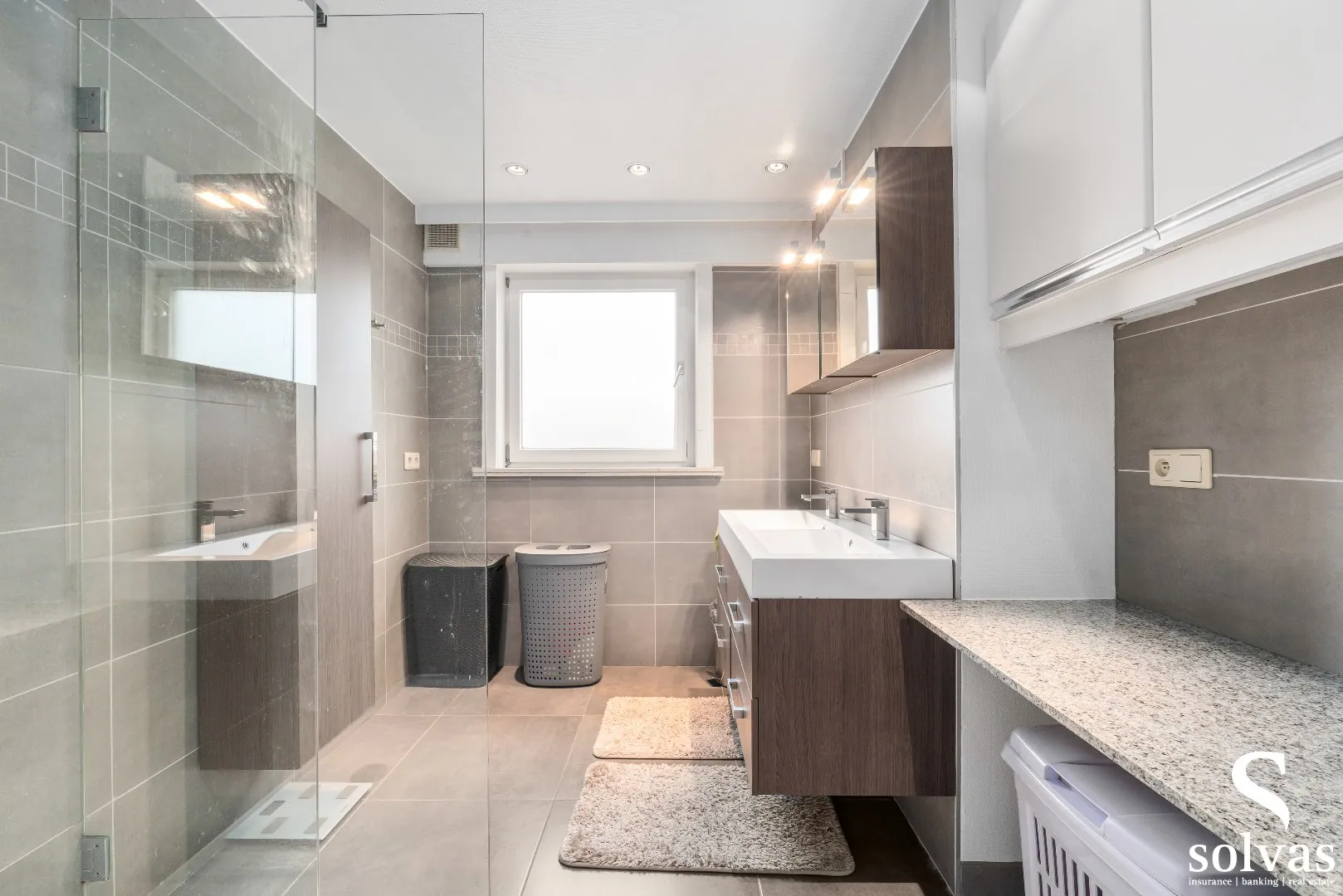 Achteraan de woning vindt u de wasruimte met aansluitend een polyvalente ruimte die perfect kan dienen als hobbyruimte, bureau of praktijkruimte. Op het gelijkvloers is eveneens een vernieuwde badkamer aanwezig met dubbele lavabo en inloopdouche.