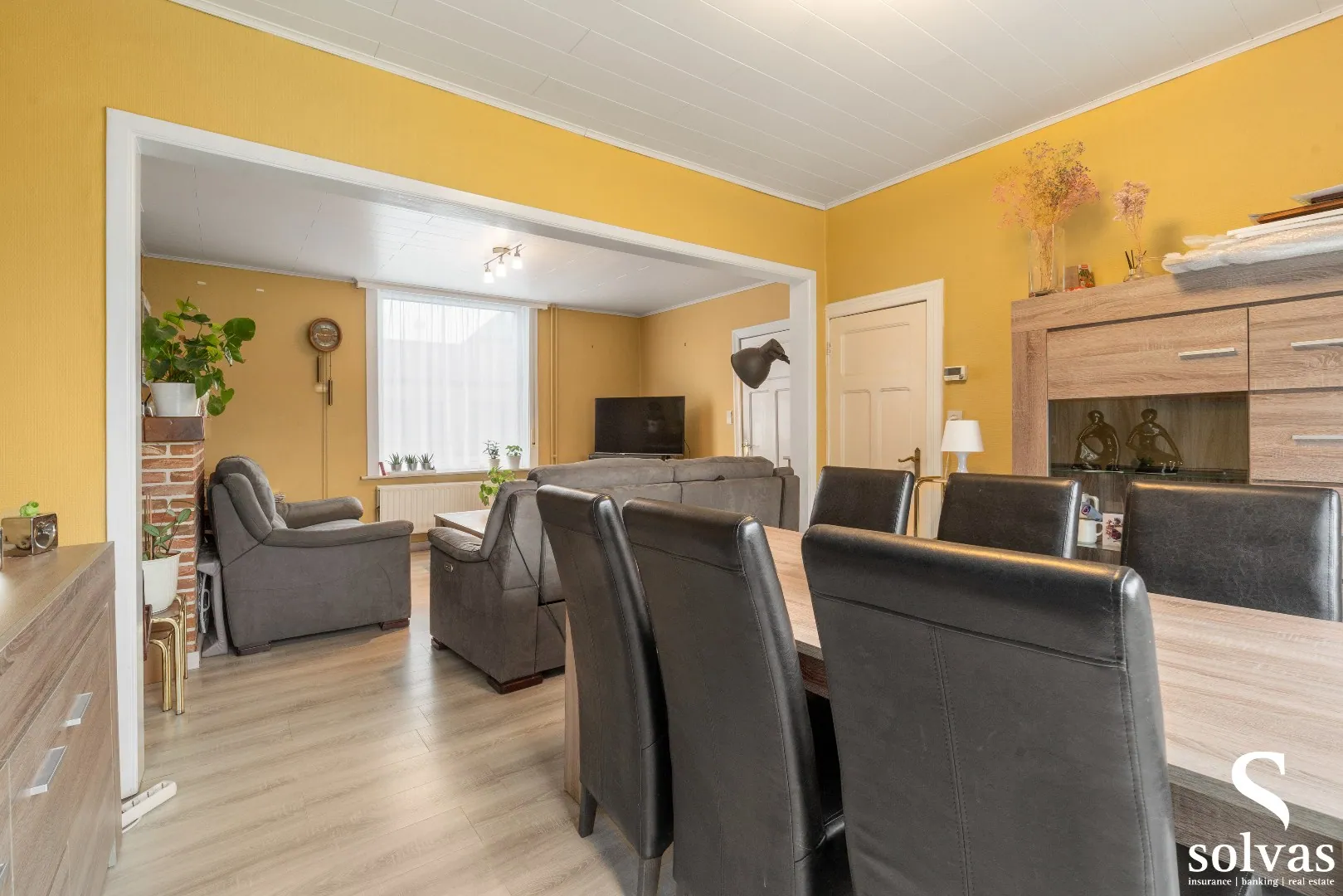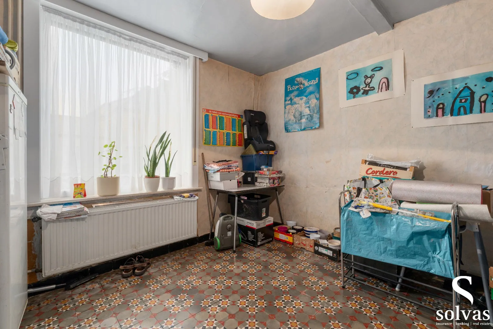 De huidige indeling is als volgt: via de inkomhal heeft u toegang tot de leefruimte en de achtergelegen keuken. Aansluitend aan de keuken bevindt zich een praktische berging, daarnaast is er ook een berging onder de trap. Op het gelijkvloers is bovendien een extra kamer aanwezig die perfect kan dienen als bureauruimte of hobbykamer.