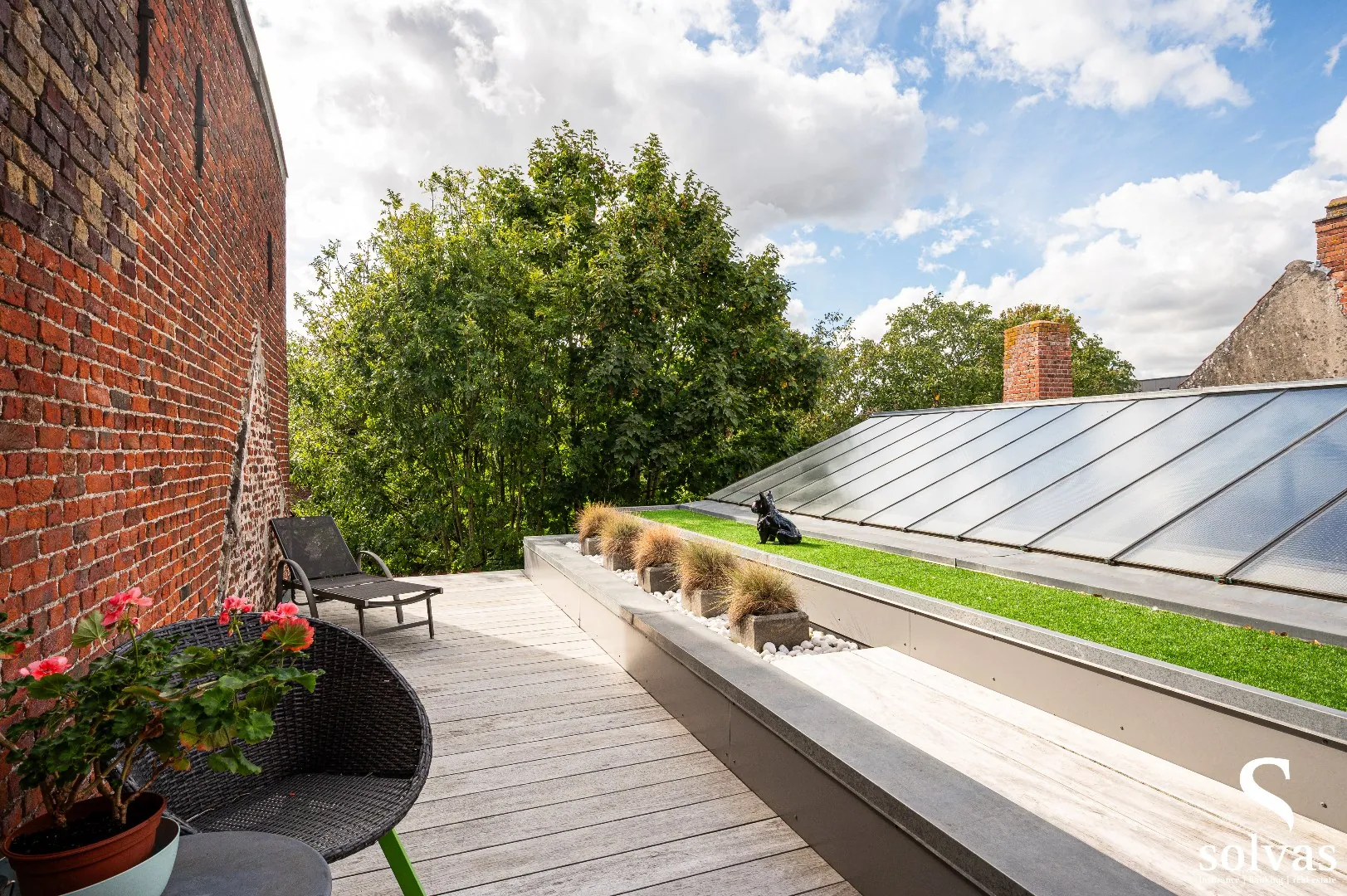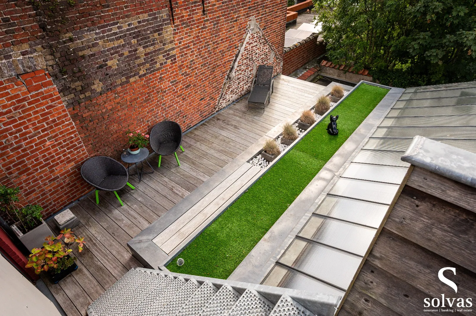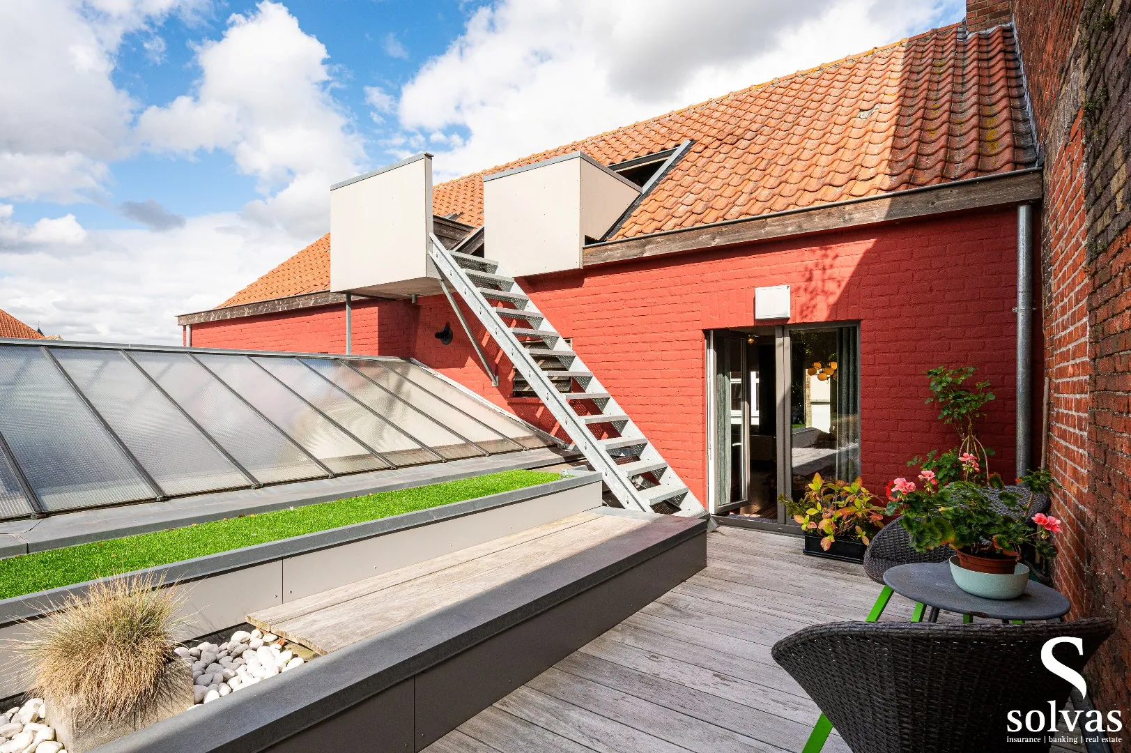Een absolute troef is het ruime, overdekte terras op de zolderverdieping, bereikbaar via een buitentrap vanaf het terras aan de leefruimte. Deze verrassende extra buitenruimte is perfect als loungehoek, bar of ontspanningsplek – en dat allemaal in ... alle rust, midden in het centrum!